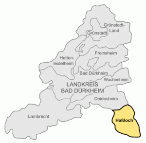 Haßloch ist eine verbandsfreie Gemeinde im Landkreis Bad Dürkheim. Sie liegt an der A 65 zwischen Ludwigshafen am Rhein/Mannheim und Neustadt an der Weinstraße. Bekannt ist Haßloch vorallem durch den Holiday Park. Die erste urkundliche Erwähnung liegt über 1400 Jahre zurück, allerdings vermutet man das Haßloch wohl viel älter ist und schon als römische Siedlung existierte. Haßloch ist auch das größte Dorf Deutschlands. Seit 1999 findet am letzten Septemberwochenende das Andechser Bierfest statt.