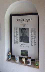 | 19:28, 21. Aug. 2012 | St Josef Obrigheim 4.JPG (Datei) | 666 KB | Suggs | {{Bildbeschreibung| St. Josef-Kapelle Obrigheim: Tafel mit Namen von im Zweiten Weltkrieg Gefallenen.Im Bild: Josef Waibel, Vater des Kapellenstifters Richard Waibel | selbst |S. Zimmermann | 19.08.2012 }} [[Kategorie:Bild (S… | 1 | |