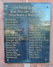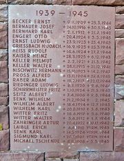 | 14:28, 22. Sep. 2012 | Gedenktafel WK 1 Asbach.JPG (Datei) | 278 KB | Suggs | {{Bildbeschreibung|Asbach: Gedenktafeln für die Opfer des Ersten Weltkriegs auf dem Friedhof | selbst |S. Zimmermann | 16.09.2012 }} Kategorie:Bild (Suggs) Kategorie:Bild (Obrigheim (Baden)) [[Kategorie:Bild (Gedenkst… | 1 | |