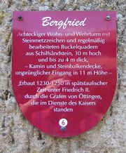 | 19:32, 10. Jun. 2013 | Infotafel Burg Steinsberg 11.JPG (Datei) | 195 KB | Suggs | {{Bildbeschreibung|Burg Steinsberg: Infotafel Mantelmauer | selbst | S. Zimmermann | 02.06.2013 | Die Mantelmauer }} Kategorie:Bild (Suggs) Kategorie:Bild (Burg Steinsberg) == Lizenz == {{CC-by-nc}} | 1 | |