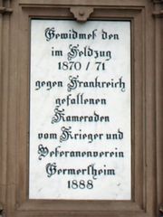 | 18:27, 9. Jan. 2014 | Germersheim-Kriegerdenkmal-01.jpg (Datei) | 189 KB | {{Bildbeschreibung| Kriegerdenkmal Germersheim | Selbst fotografiert | Manfred Hattenkerl | 10.06.2011 | Auf Anfrage (110610-Ger 065) | {{CC-by-nc-sa-2.5}} }} ; Standort : Ecke Hauptstraße / Paradeplatz. {{Stadtplan|lat=49.21792|lon=8.37438|z=16}}… | 1 | |