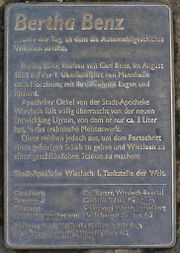 | 16:37, 14. Jan. 2014 | Wiesloch-BerthaBenz-PElsasserPlastik-05.jpg (Datei) | 241 KB | {{Bildbeschreibung|Wiesloch Hauptstraße – Information zur Plastik „Bertha Benz“ (1991) aus Bronze mit Edelstahl von Pit Elsasser. | Selbst fotografiert | Manfred Hattenkerl | 29.04.2008 | Auf Anfrage (080429-Wies 009) |{{CC-by-nc-sa-2.5}} }}… | 1 | |