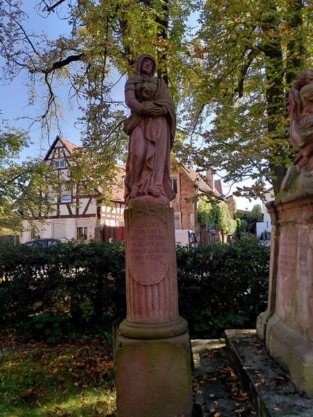 - Knittelsheim, Kreuzigungsgruppe auf dem Römerplatz, linke Beistatue