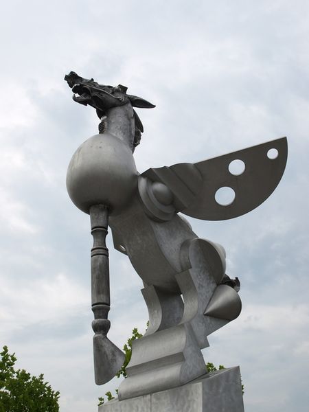 - Skulptur „Pegasus” von Jürgen Goertz am Dorfplatz im Technologie- und Ökologiedorf in Bruchsal.