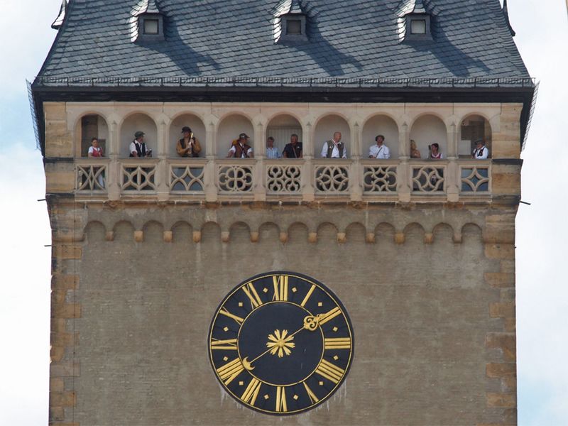 - Kaisertafel in Speyer – Auf dem Altpörtel bereiten sich die Böllerschützen auf den Empfang des Klostertross aus Maulbronn vor.