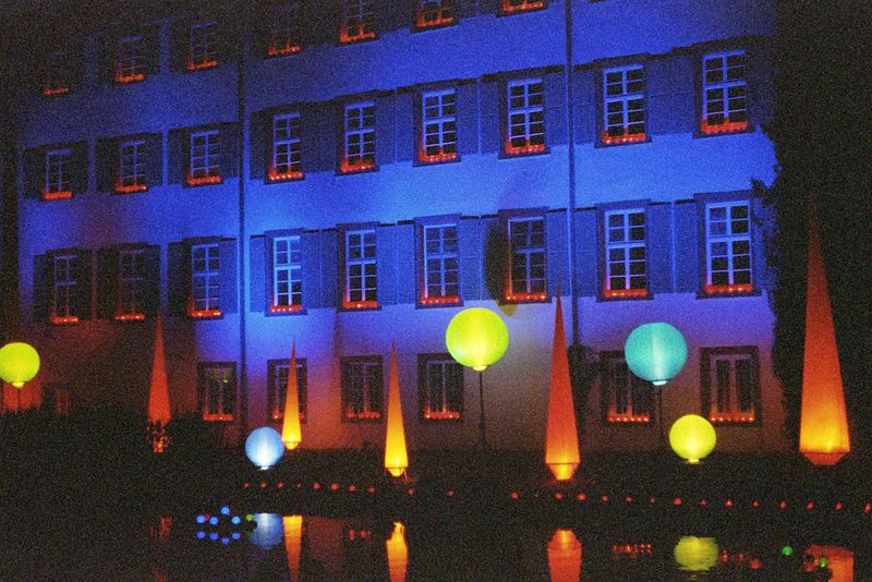 - Angelbachtal – Pfingstmarkt 2008. Schloss und Schlossgartenbeleuchtung.