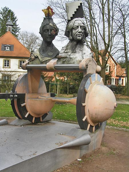 Angelbachtal – Plastik „Chariot Montreal“ (1989) von Jürgen Goertz im Schlossgarten Eichtersheim