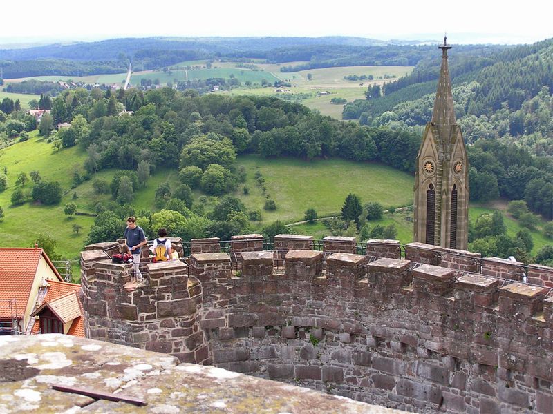 - Bergfeste Dilsberg – Vom Bergfried ein Blick auf die gegenüberliegenden Mauergang.