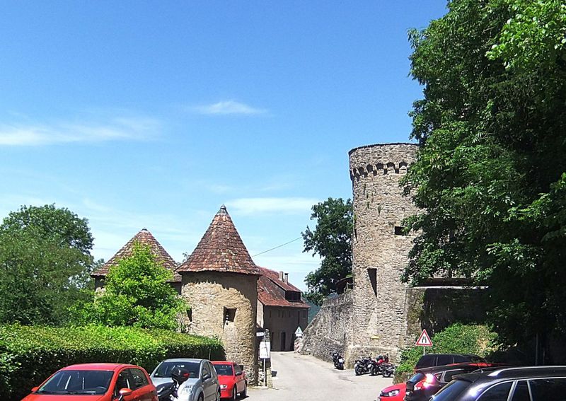 - Burg Guttenberg: Vorburg, rechts der Eingang