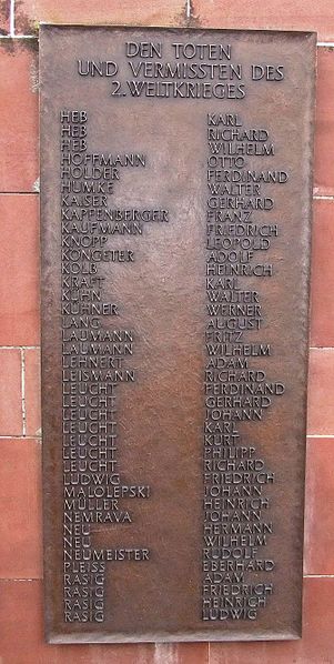 - Hoffenheim: Gefallenendenkmal für die Opfer des Zweiten Weltkrieg auf dem Friedhof. Tafel mit Namen von Gefallenen