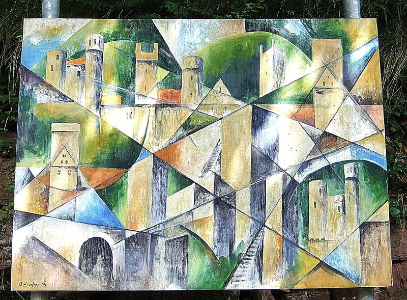 - Station 1 des Neckarsteinacher Kunstweges: Gemälde "Vier Burgen" von Ortwin Zeitler aus Mannheim.