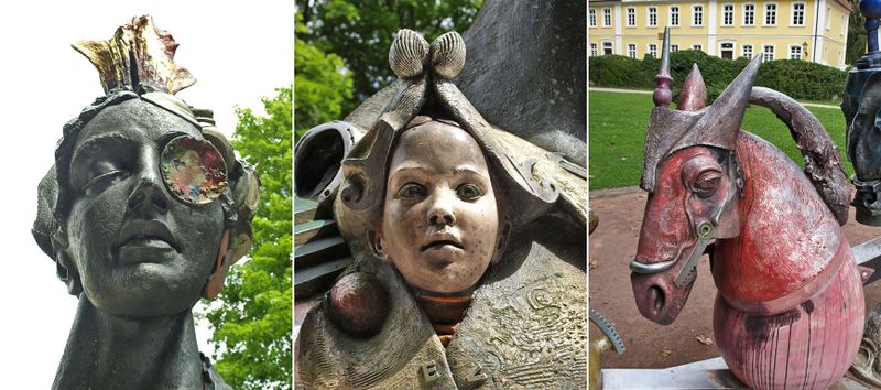 Angelbachtal – Details der Plastik „Chariot Montreal“ (1989) von Jürgen Goertz im Schlossgarten Eichtersheim.