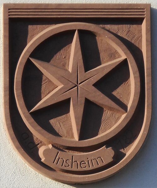 - Wappen der Gemeinde am Rathaus Insheim, angebracht an der Südfassade desselben.