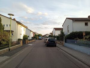 Sie beginnt als Westabzweig der Mörlheimer Hauptstraße, macht einen Knick nach Süden und im weiteren Verlauf nach Osten, um an der Mörlheimer Hauptstraße zu enden. Das südliche Ende wird nahtlos fortgeführt durch An den Thoräckern.