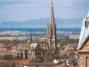 Nach langer Planungsvorgeschichte entstand 1893-1904 die „Gedächtniskirche der Protestation“ - als Denkmal der Protestation auf dem Speyrer Reichstag von 1529 und als „protestantischer Dom“. Der steile sechseckige Westturm erscheint als bedeutsamer Akzent im Stadtbild. Die reiche Ausstattung mit Skulpturen und einem Glasmalereizyklus stammt aus der Erbauungszeit.