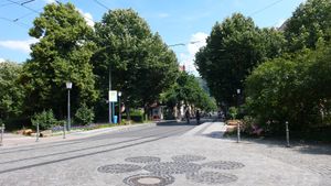 Die nächste Haltestelle der Straßenbahnen in Fahrtrichtung Zentrum/Hauptbahnhof liegt an der Ecke Römerkreis / Blumenstraße / Bahnhofstraße: (Römerkreis-Süd, Haltestelle).