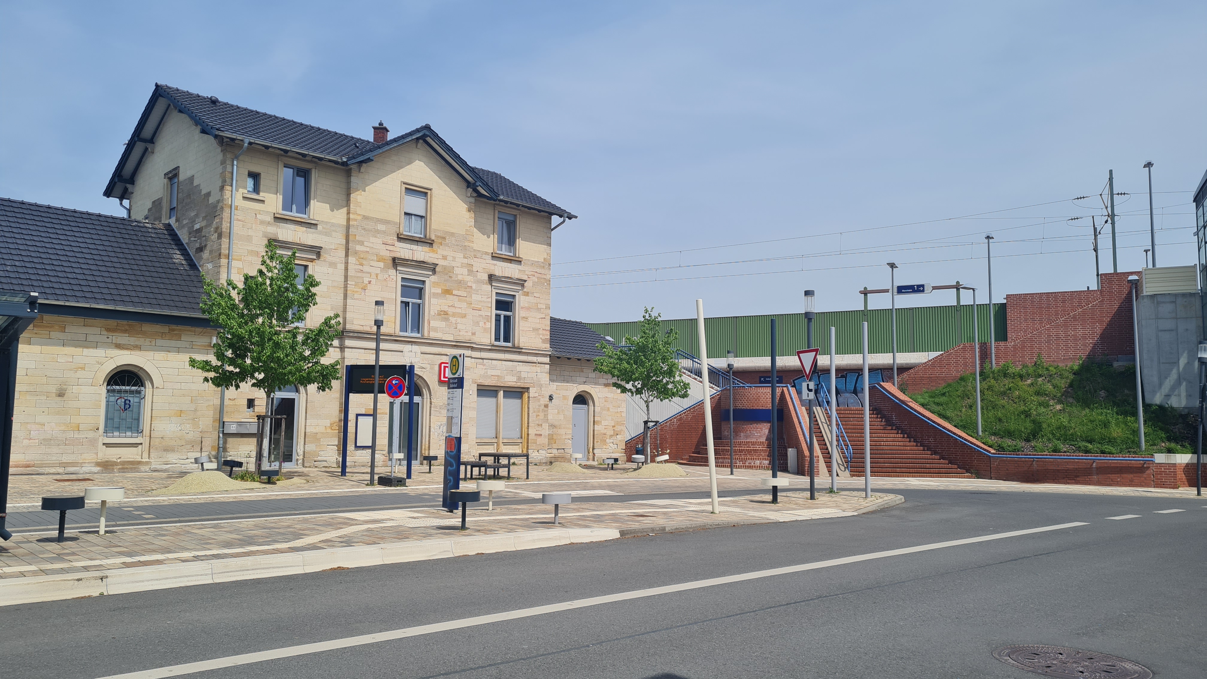 Bürstadt Bahnhof Gebäude und Aufstieg