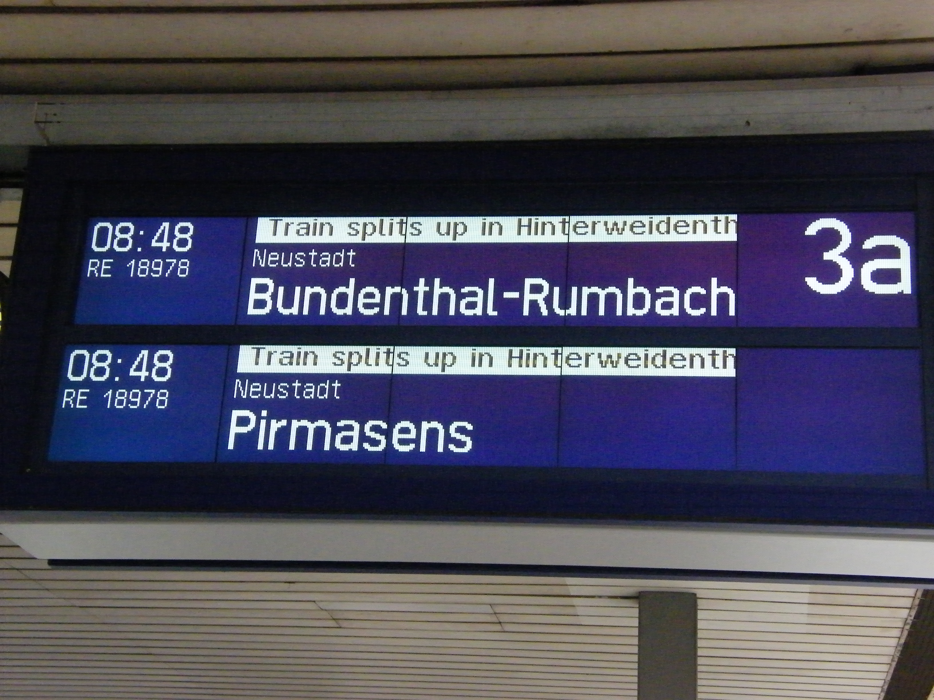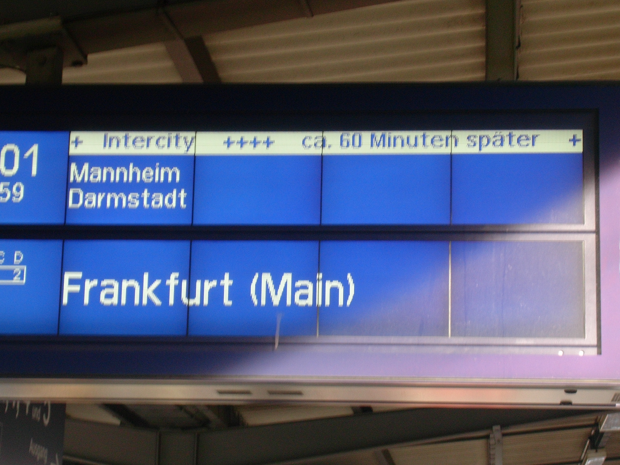 - Anzeigetafel am Bahnsteig des Mannheimer Hauptbahnhofs