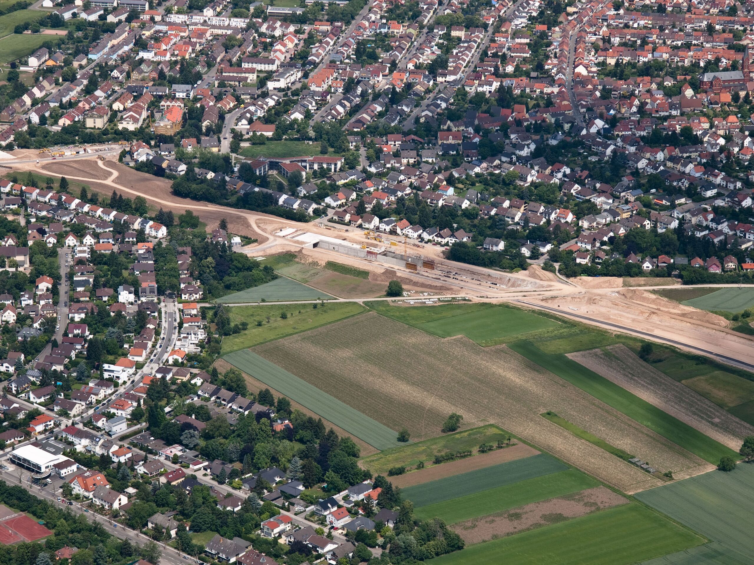 - Luftaufnahme Neubau Bundesstraße 535 im Bereich Schwetzingen (links) und Plankstadt (rechts).