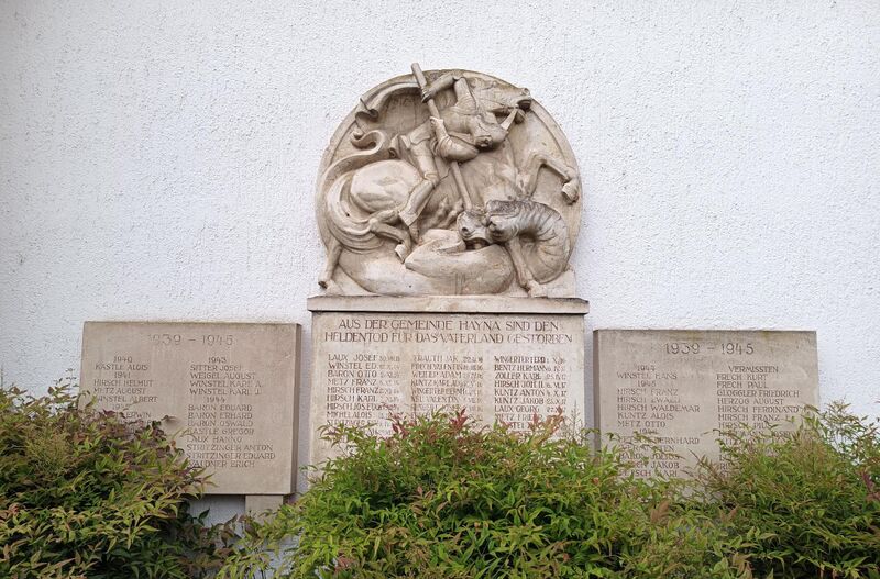 - Heilig Kreuz Kirche Hayna, Gefallenendenkmal neben dem Haupteingang.