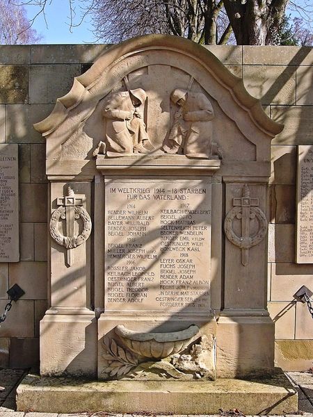 - Malschenberg:Gefallenendenkmal für die Opfer beider Weltkriege vor dem Friedhof, zentrale Tafel, die den Ersten Weltkrieg zum Thema hat