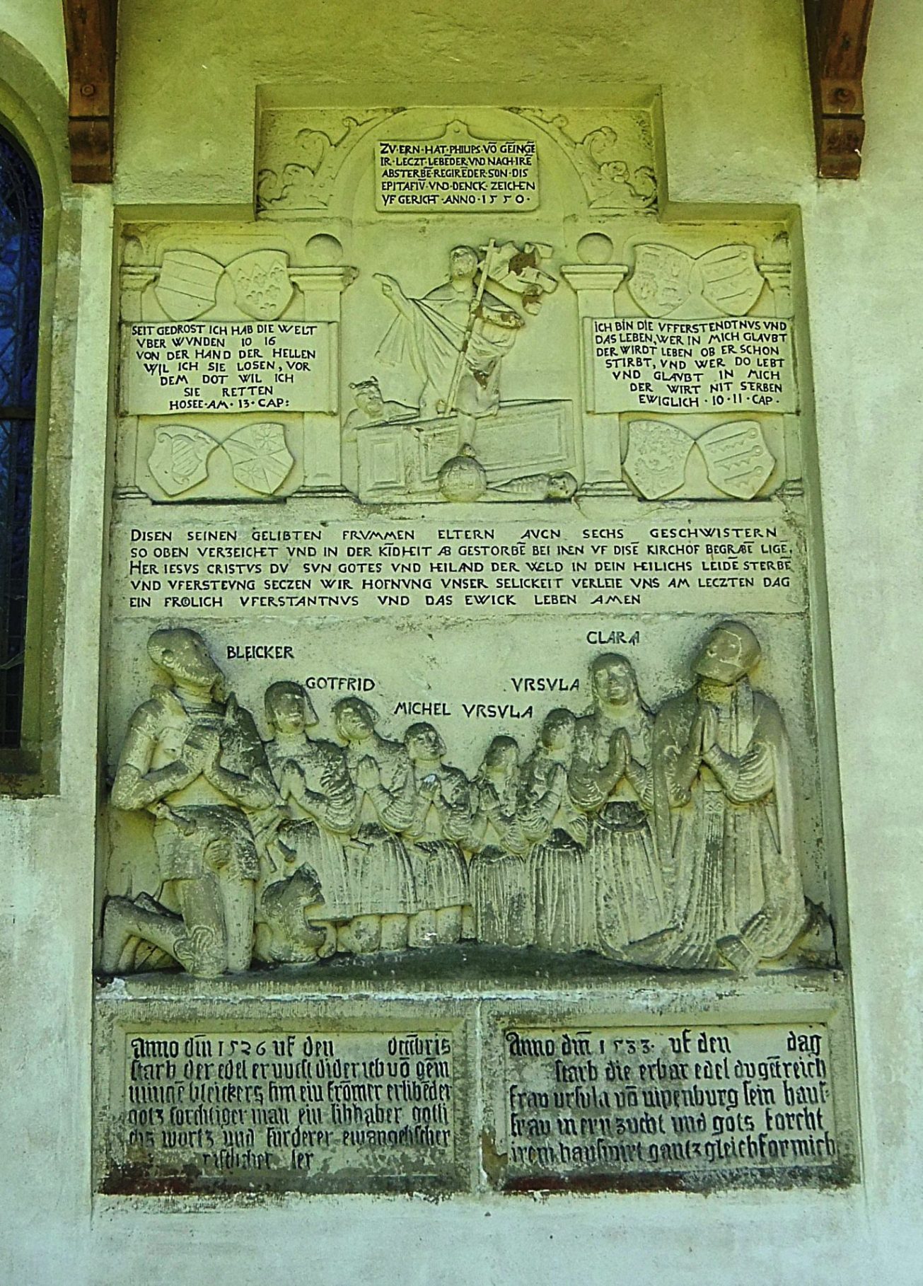 Burg Guttenberg: "Gemmingen-Epitaph" aus der Mitte des 16. Jahrhunderts an der Burgkapelle