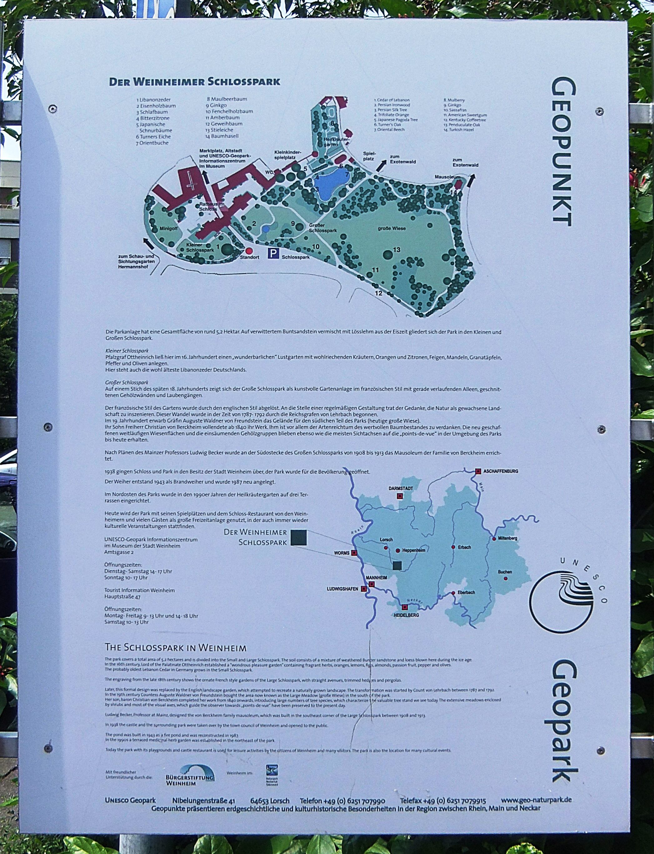 - Weinheim: Tafel des Geo-Naturpark Bergstraße-Odenwald am um zum Schlosspark