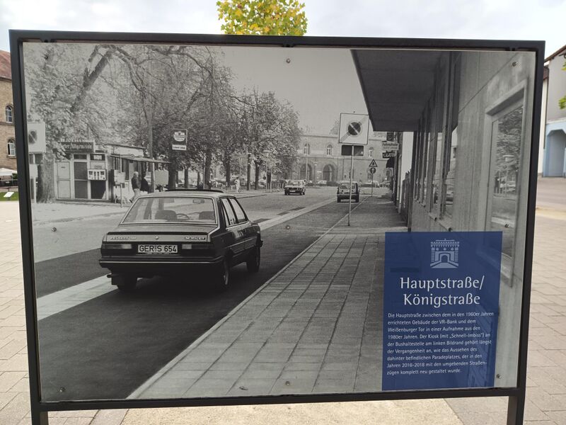 - Königstraße (Germersheim): Ansicht aus den 1980er Jahren. Im Hintergrund das Weißenburger Tor