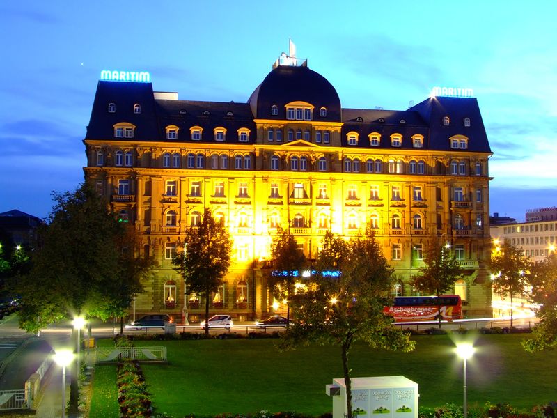 - Nachtaufnahme des Maritim Hotel vom Mannheimer Wasserturm aus