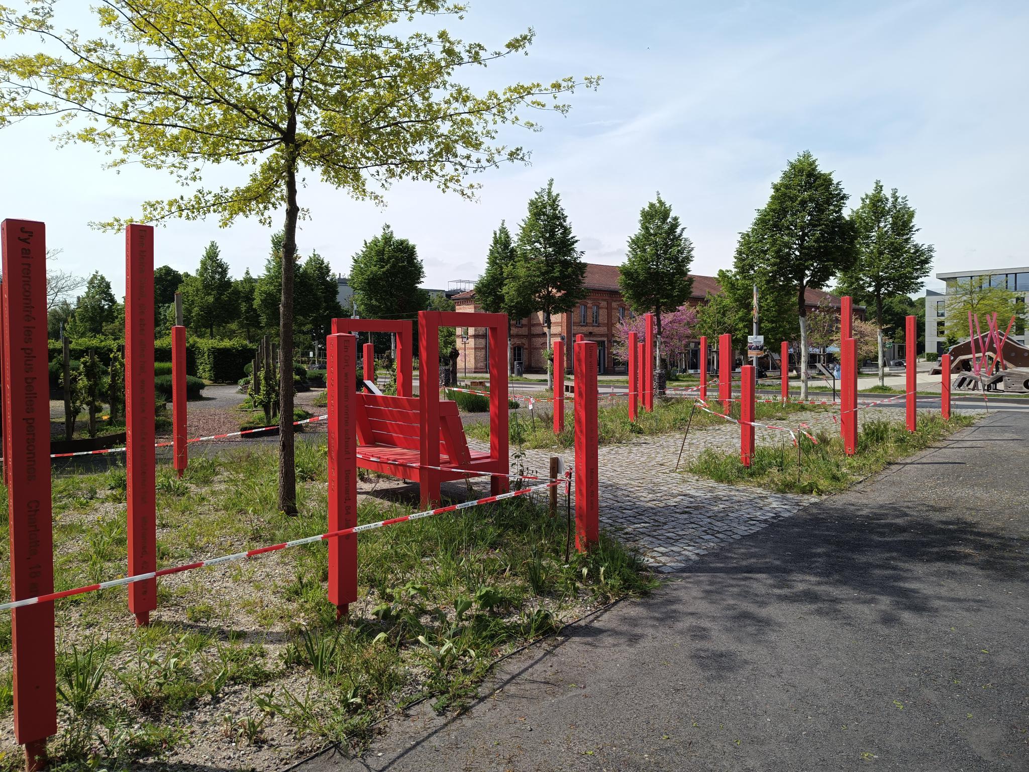 - Südpark Landau Partnergarten Haguienau: 2024 neu gestaltete Stelenreihe