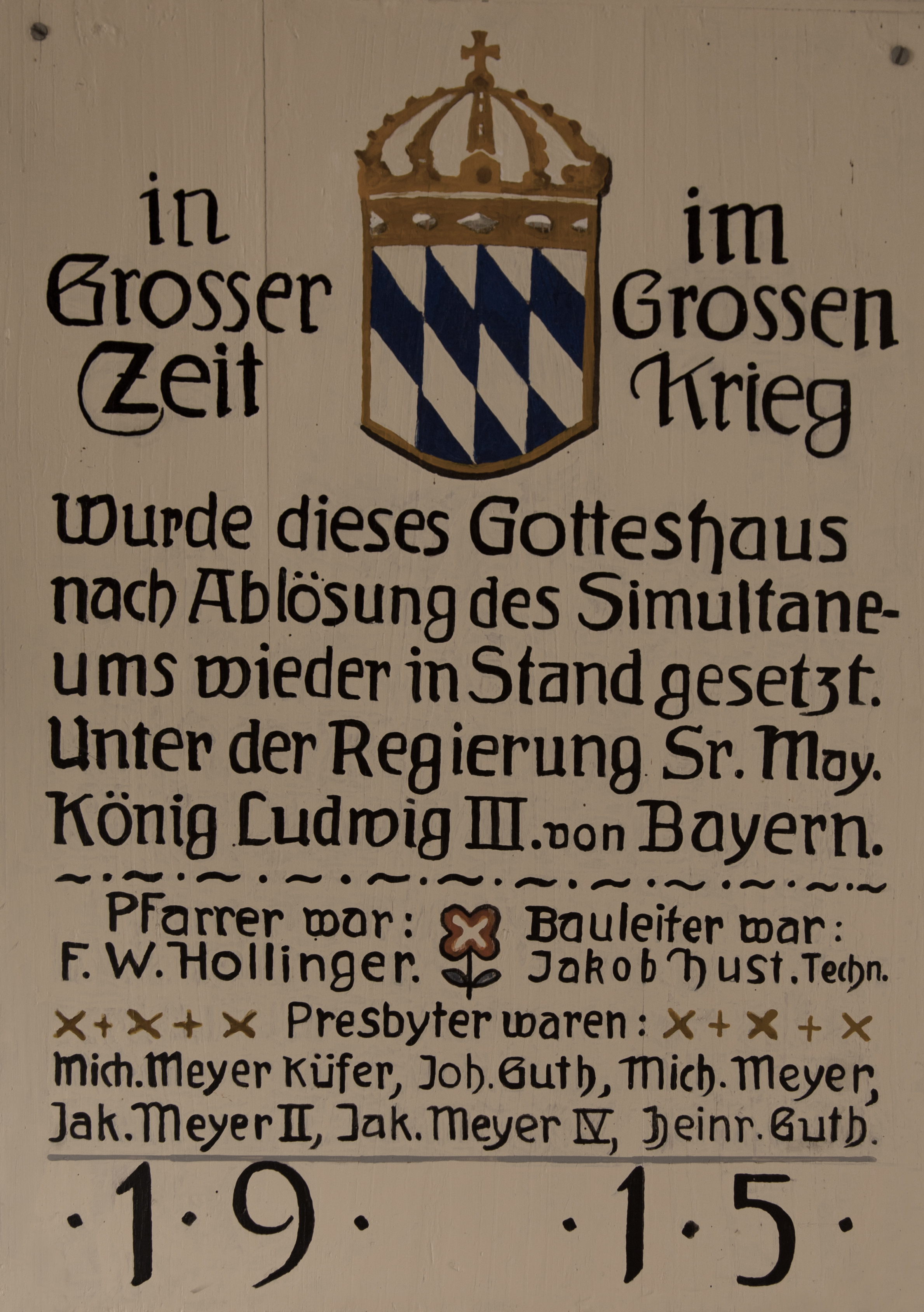 - Protestantische Kirche Insheim, Gedenktafel in der Sakristei anlässlich der Aufhebung des Simultaneums