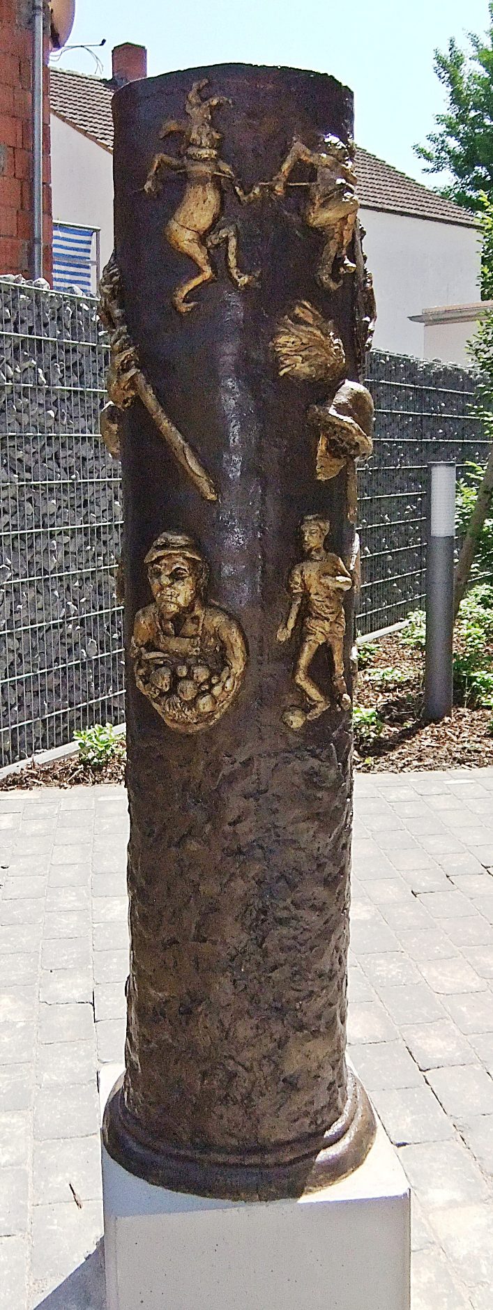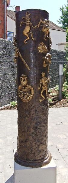 Rülzheim Stele "Rülzheimer Kulturleben", gestaltet und gestiftet von Rosel Wolf im Jahr 2014. Standort: Hinter dem Centrum für Kunst und Kultur
