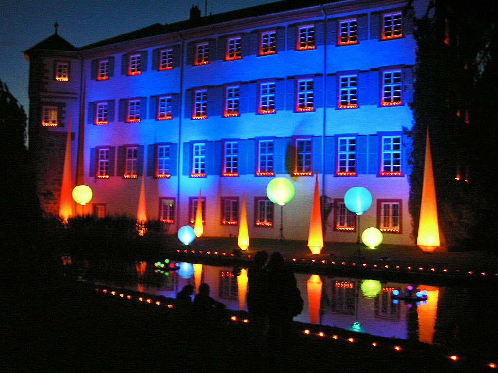 - Angelbachtal – Pfingstmarkt 2008. Schloss und Schlossgartenbeleuchtung.