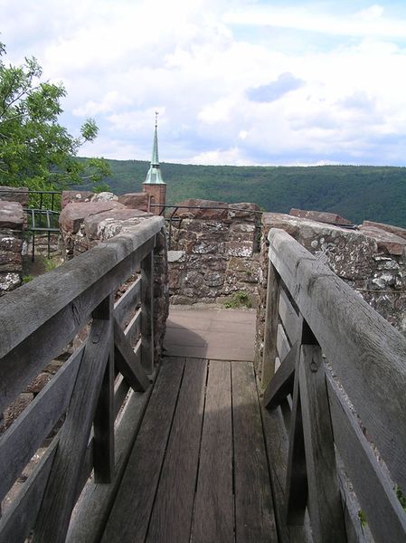 - Bergfeste Dilsberg – Brücke vom Bergfried zum gegenüberliegenden Mauergang.