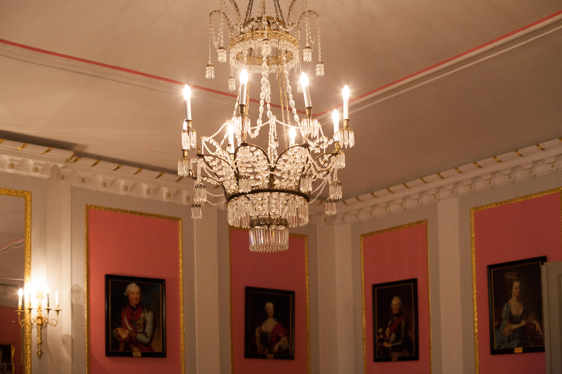 - Kronleuchter und Gemälde im Erdgeschoss des Rohrbacher Schlösschens in Heidelberg-Rohrbach
