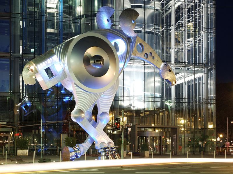 - S-Printing Horse, Skulptur von Jürgen Goertz vor der Print Media Academy am Heidelberger Bahnhof.