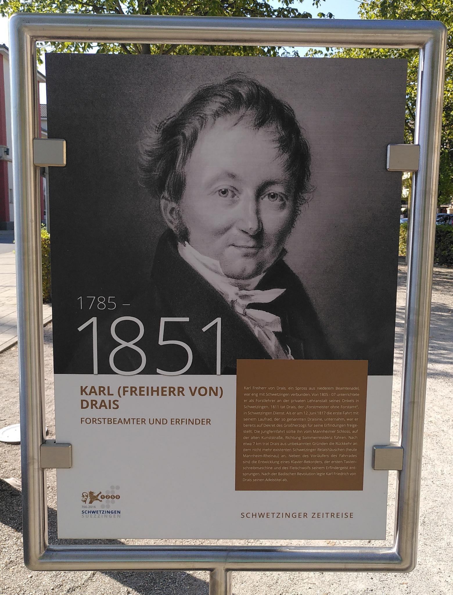 - Schwetzingen. Infotafelserie "Schwetzinger Zeitreise" am Bahnhof Schwetzingen. Hier: Karl Drais