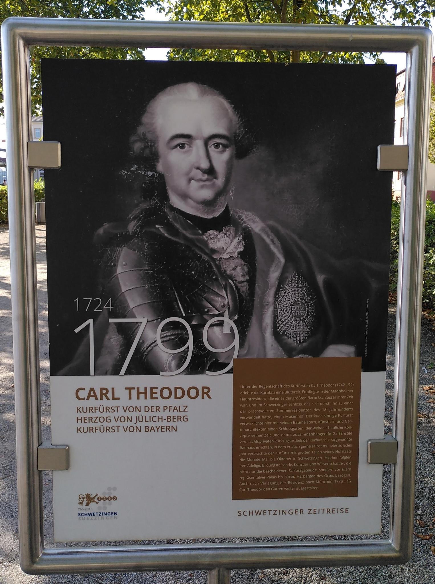 - Schwetzingen. Infotafelserie "Schwetzinger Zeitreise" am Bahnhof Schwetzingen. Hier: Karl Theodor