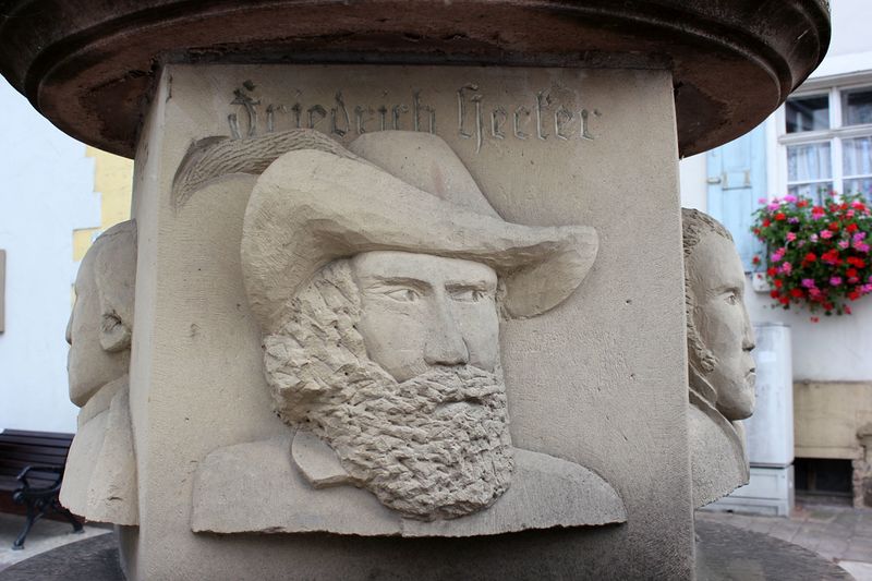 - Sinsheim – Hauptstraße. Porträt von Friedrich Hecker an der Freiheitssäule (1998) von Hans Michael Franke.