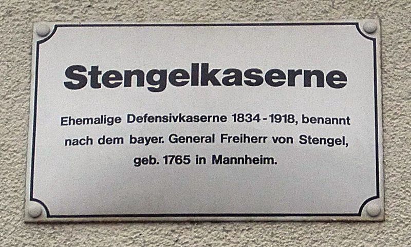 Festung Germersheim: Kleine Infotafel an der Stengelkaserne