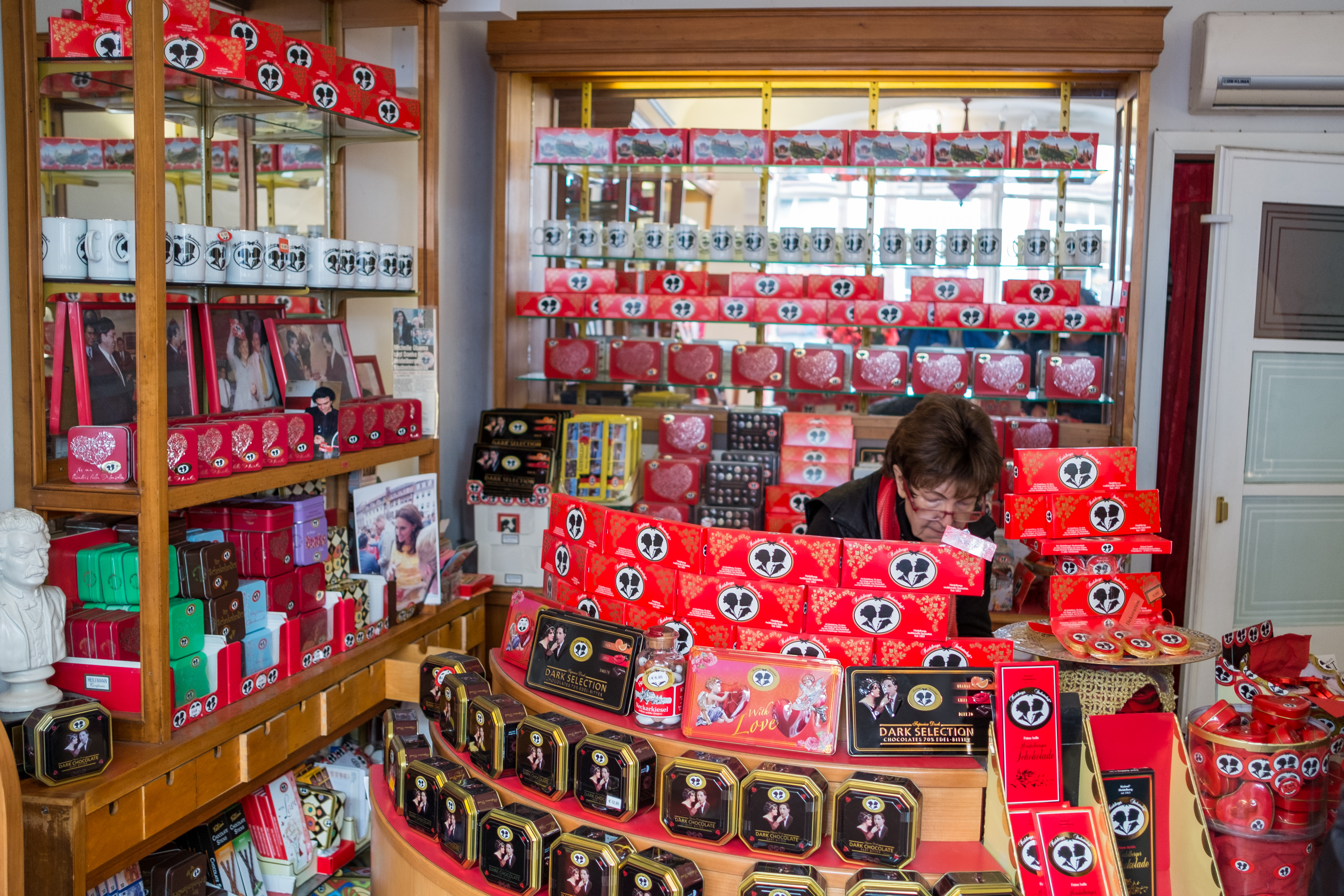 In der Chocolaterie Knösel. Heidelberger Studentenkuss überall.