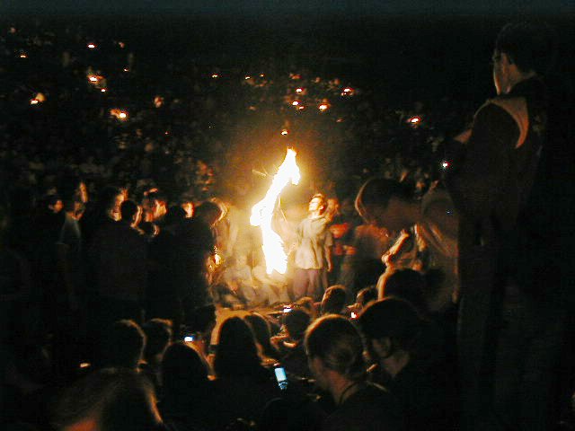 Walpurgisnacht 2005 auf der Heidelberger Thingstätte, Feuerkünstler, Menschen
