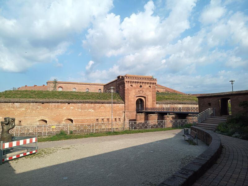- Festung Germersheim: Weißenburger Tor, östliche, der Stadt abgewandte Seite, vom nahegelegenen Reduitgebäude aus gesehen