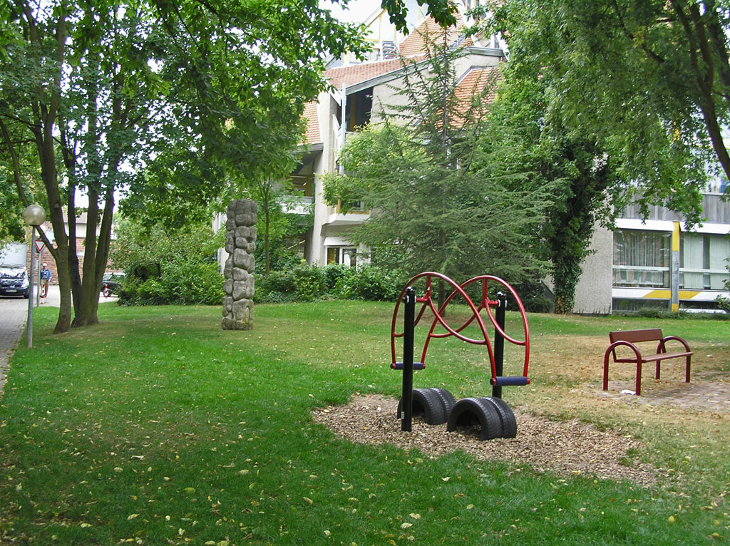 - Wiesloch, Amarante Anlage – Stele „Lebensbaum“ (1956) aus Muschelkalk von László Szabó.