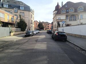 Als die Straße Anfang des 20. Jahrhunderts angelegt wurde, war sie eine voll ausgebaute Straße die mittig den ehemaligen Artillerie-Exerzierplatz querte. Die 1923/25 angelegte Bebauung veränderte dies.