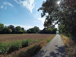 Sie beginnt an der Raimund-Huber-Straße und ist zunächst unbebaut, bis sie an einer Ansammlung von Gebäuden im Westen endet.