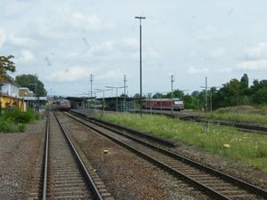 Die Einfahrt in den Landauer Hauptbahnhof aus dem Führerstand gesehen