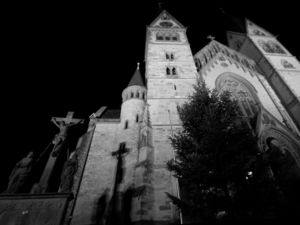 Beim Heppenheimer Stadtbrand im Jahr 1369 wurde auch der Kirchturm beschädigt. er erhielt etwa zehn Jahre später eine Erneuerung in gotischen Baustil.