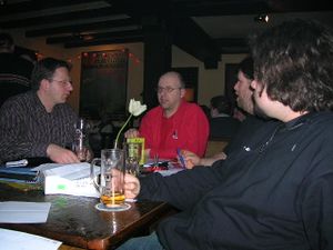 Axel hält ein monatliches Treffen für zu häufig. Es sollen nach Bedarf Treffen organisiert werden, die jedoch am abgestimmten 1. Donnerstag im Monat stattfinden sollen. Der Ort wird vom jeweiligen Organisator bestimmt.