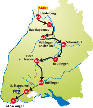 Am 24. Juli 2008 startet die Tour in Heidelberg. Im Jahr 2003 endete die Tour in Schwetzingen.